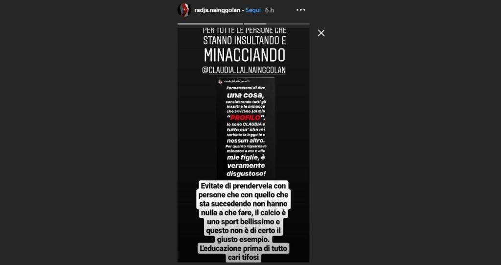 Parole che hanno avvelenato i tifosi dell’Inter che hanno preso d’assalto il suo profilo Instagram e quello della sua compagna Claudia Lai, inveendo contro il centrocampista belga di origini indonesiane e le sue figlie. Un fatto che ha obbligato il «Ninja» a prendere posizione a difesa sua e della sua famiglia attraverso un messaggio sulle sue Instagram Stories. «Per tutte le persone che stanno minacciando mia moglie – scrive Nainggolan -: evitate di prendervela con persone che con quello che sta succedendo non hanno nulla a che fare. Il calcio è uno sport bellissimo e questo non è di certo il giusto esempio. L’educazione prima di tutto, cari tifosi».