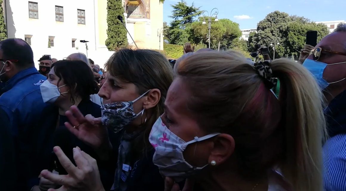 Mentre filmavo quello che stava succedendo una persona che era vicino a me mi ha domandato in maniera provocatoria perché stessi indossando la mascherina. «Come lei vuole essere libero di manifestare per non indossarla io voglio essere libera di portarla e di rispettare le regole», ho risposto io. A lui si è aggiunto un altro manifestante che ha ribadito quanto non avesse senso presentarsi lì con la mascherina, dicendomi di «andare via» e provocandomi a sua volta. Se avessi risposto la situazione, come dimostrano le scene che tutti abbiamo potuto vedere nei video dell’evento, sarebbe potuta facilmente degenerare.