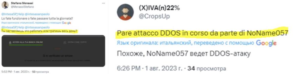 Ovviamente, gli effetti delle azioni di NoName057 variano in base all’obiettivo colpito. Nel corso degli ultimi mesi (con il loro nome diventato “virale” successivamente alle sanzioni contro la Russia dopo l’invasione dell’Ucraina e l’invio di armi a Kiev), gli hacktivisti sono stati molto attivi nella loro attività preferita: sovraccaricare i server di alcuni portali per renderli inaccessibili al pubblico. A volte contro siti istituzionali (con effetti poco tangibili), altre contro “strumenti” di uso e consumo quotidiano da parte dei cittadini, come nel più recente caso di sei banche online italiane.