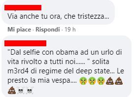 Gli insulti che Bebe ha raccolto sono ancora peggiori di quelli ricevuti nel 2017, alimentati dalla narrazione covid-negazionista. Se notate, non mancano i riferimenti alla folle ideologia complottista QAnon, della quale abbiamo già avuto occasione di parlare.