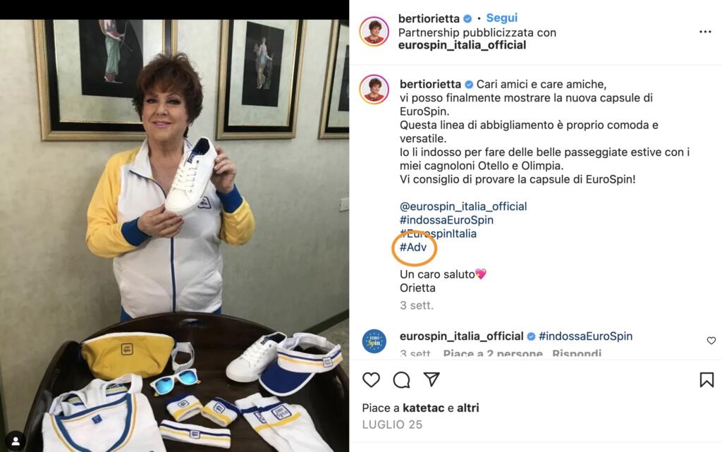 Entrambi sono stati pubblicati lo scorso 27 luglio e l’intento è chiaro ed evidente: si tratta di una pubblicità. E, come confermato dall’agente della cantante ad AdnKronos, in effetti Orietta Berti ha stipulato un accordo commerciale con la catena di supermercati Eurospin per la sponsorizzazione di una nuova linea di abbigliamento e accessori. Ma su Twitter manca l’hashtag #Adv.