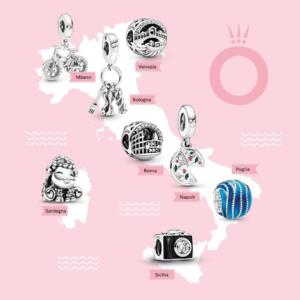 Una decisione che ha sollevato le classiche – e quasi inevitabili – polemiche sui social network. Nella campagna Pandora Loves Italia, infatti, sono stati messi in vendita 12 charms (alcuni pendenti) con tanto di rappresentazione su una cartina geografica dell’Italia. Ed ecco comparire la pizza a Napoli, una bicicletta a Milano (anche se non se ne capisce la correlazione), la pasta a Bologna, un’onda blu in Puglia per celebrare il mare e una macchinetta fotografica in Sicilia, per immortalare le bellezze di quella terra.