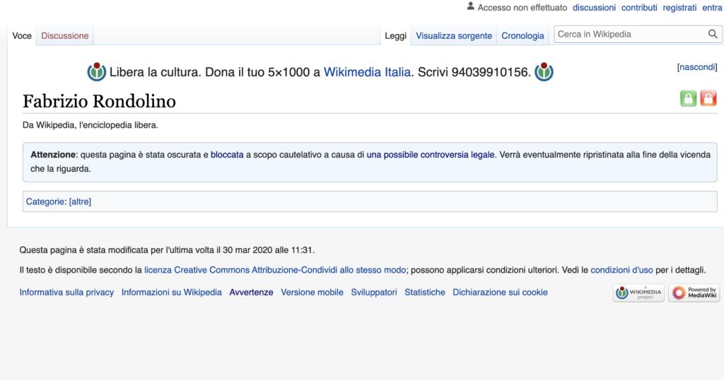 Tutte queste modifiche, occorre dirlo, sono state prontamente cancellate grazie al pronto intervento dei moderatori dell’enciclopedia partecipativa online. Quindi, tutto nella norma. Ma ci sono alcuni casi precedenti che mostrano come Wikipedia avrebbe potuto prendere anche altre decisioni. Nel recente passato, infatti, abbiamo visto come l’enciclopedia online abbia scelto – per esempio – di bloccare la pagina su Alessandro Orsini per via di modifiche prive di fonti. Un caso analogo, seppur con modalità differenti, era stata bloccata la possibilità di apportare modifiche al lemma dedicato al Rogo di Odessa. Due casi in cui l’enciclopedia online ha deciso di sospendere temporaneamente le modifiche, in attesa di concludere dibattiti e confronti interni, anche con gli utenti attraverso gli appositi moduli di discussione. E un qualcosa di simile sta accadendo in questi giorni attorno alla pagina Wikipedia di Fabrizio Rondolino.