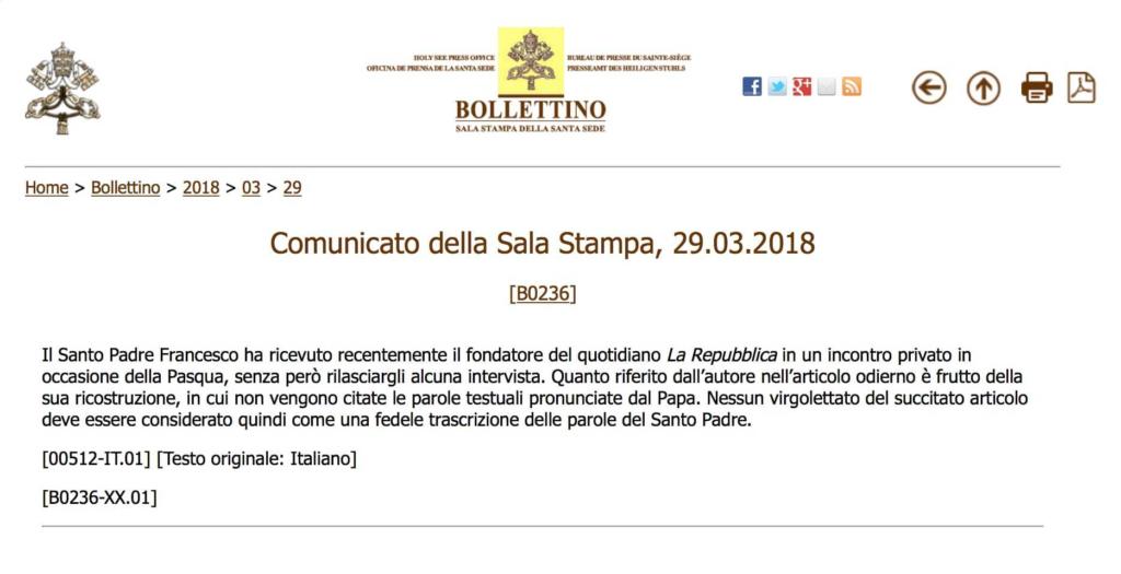 Ovviamente, Eugenio Scalfari è una firma autorevole. Ma a questo punto, sembra chiaro che il pensiero di Papa Francesco sull’inferno sia stato decisamente frainteso. Insomma, siamo al limite della fake-news.