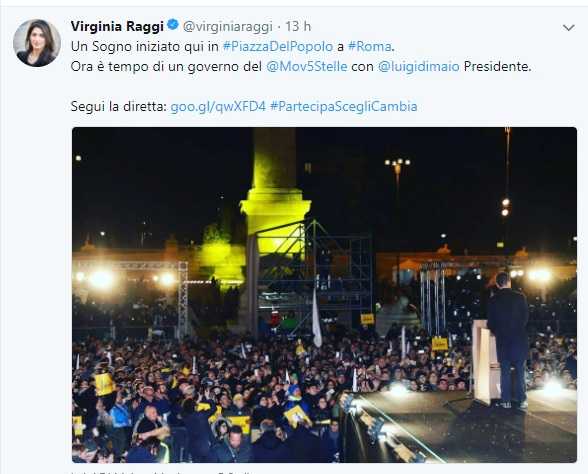 Sui principali account social del M5S così come sul blog delle Stelle le foto e le riprese video sono state fatte in modo tale da nascondere gli ampi spazi vuoti che c’erano in piazza del Popolo.