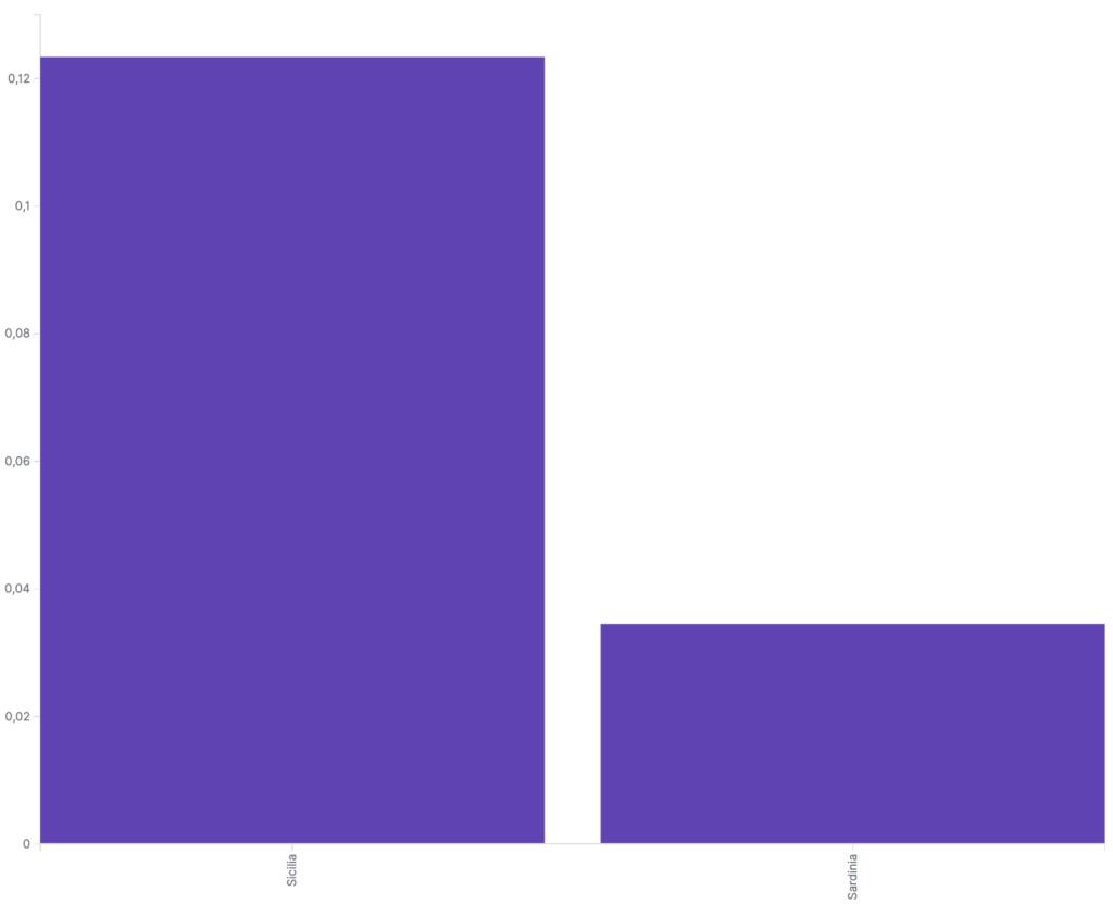 Il 12% dei post sponsorizzati di tutta Italia da tutti i partiti sono stati destinati a un’audience siciliana. In misura residuale, invece, la Sardegna è tra i fanalini di coda con un piccolo 3,5%.