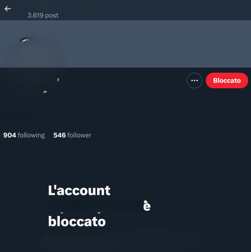 Attualmente, se blocchiamo un utente su X – per qualsiasi motivo – quest’ultimo non solo non può interagire con i nostri post, ma non li potrà neanche vedere. Questo è un esempio di ciò che succede – prima che la modifica diventi effettiva – quando si prova a visualizzare il profilo di un utente che abbiamo bloccato su X.