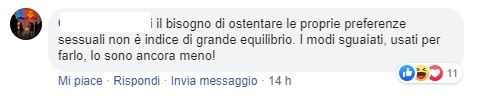 La vagonata dei commenti contro il Pride prosegue e l’atto d’accusa è sempre lo stesso: l’ostentazione. Ma c’è anche una luce in fondo al tunnel, dove i leoni da tastiera forse non riusciranno mai ad arrivare, rinvigoriti dalle spallucce social e dalla forza di non avere argomenti ma sciorinarli come un buon politico. Ed è il commento di una donna che spiega: «Ma quanti ben pensanti, mai nessuno che si indigni per un ventennio in TV di culi e tette in prima serata, o di un programma come il grande Fratello o ciao Darwin, schifezze propinate in prima serata da far rabbrividire, ma i bacchettoni si indignano per una giornata di festa e colore, siete di in ipocrisia che rasenta il ridicolo». La verità fa male.