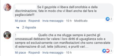 «Quali sarebbero i loro diritti» si chiede un utente. E un altro rincara «e i doveri?». Come se i doveri si dovessero basare sui gusti sessuali di una persona e come se un uomo o una donna gay non rispettassero il codice penale e civile. Ma questo è il populismo base di chi non conosce iperboli e allegorie e non riesce a distinguere la propria eterosessualità da chi, invece, ha semplicemente dei gusti diversi. E il Pride, colorato, truccato e chiassoso è proprio l’allegoria iperbolica di come il mondo LGBT+ vive la sua vita e chiede a tutti solo rispetto ed uguali diritti.