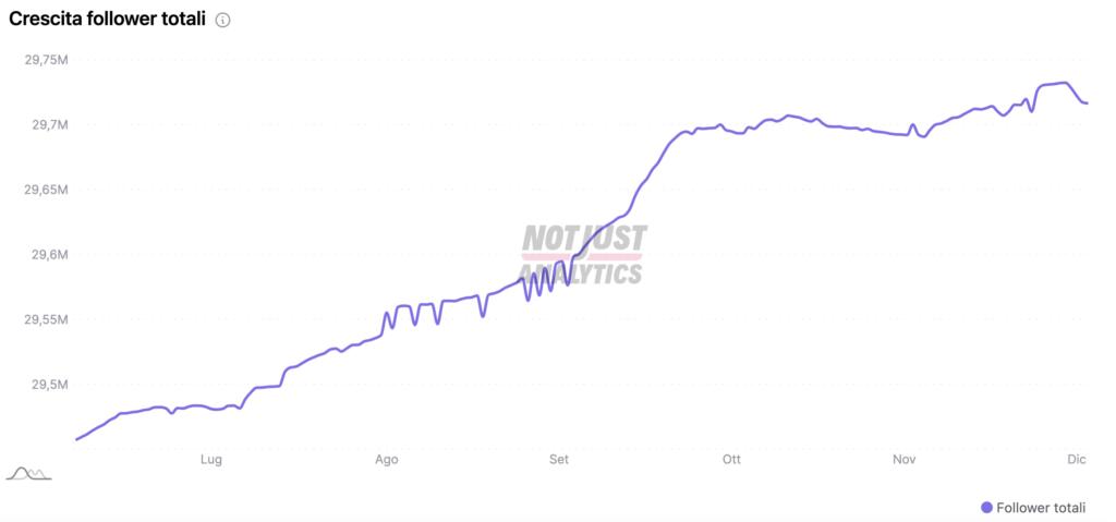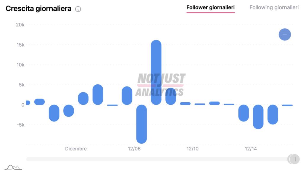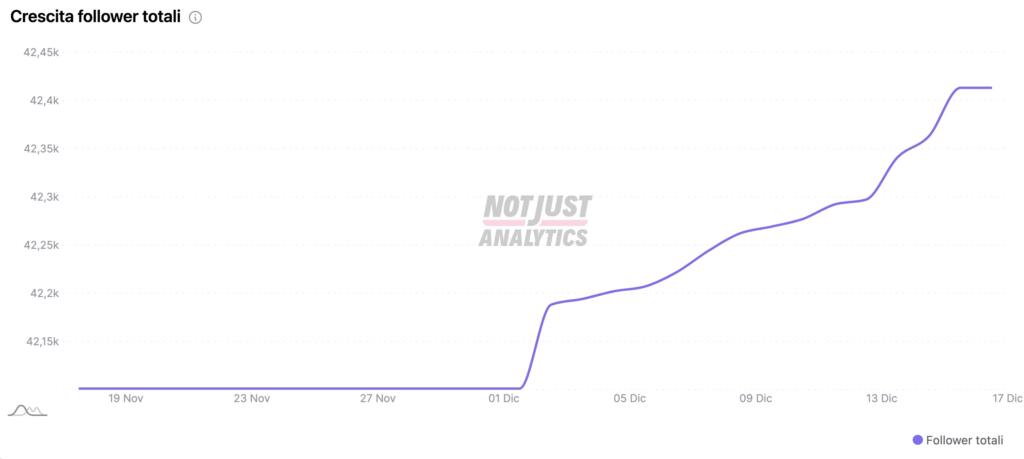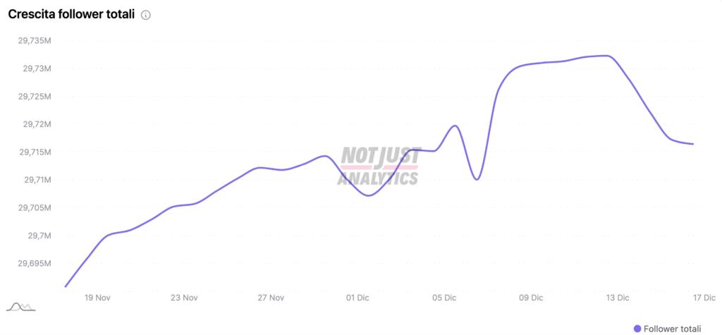 Un grafico che si può tradurre nei numeri forniti dall’analisi della pagina social fornita da NotJustAnalytics. È stato addirittura maggiore il guadagno di follower nella giornata del 9 dicembre rispetto alla perdita netta della tre giorni 15-18 dicembre.