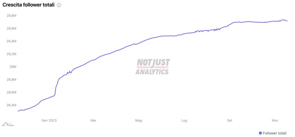 Questo è, infatti, l’andamento dell’ultimo anno. Chiara Ferragni è partita dai 28,4 milioni di dicembre 2022 per assestarsi – oggi, nonostante le polemiche relative al caso Balocco – a 29,7 milioni.