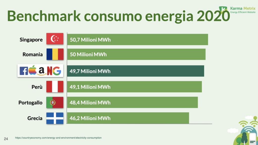 Altro dato molto interessante per rispondere alla domanda “quanto inquina Big Tech” arriva dai numeri del consumo energetico da parte delle grandi aziende del mondo tech. Le FAANG, secondo il report 2022, registravano consumi simili a quelli di Paesi come Romania e Perù.