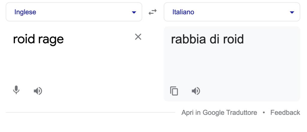 Il termine “roid rage”, come è stato mirabilmente spiegato da Licia Corbolante sul blog Terminologia ect., è stato copiato e incollato (oppure è stata utilizzato l’opzione “traduci in italiano” sul browser) su Google traduttore dopo che questa notizia (oltretutto ricordiamo che si tratta di un vociare, visto che non è mai stata confermata) è apparsa nei giorni scorsi su moltissimi siti d’Oltremanica e d’Oltreoceano. Ma quella “roid rage” non è una rabbia che fa riferimento a un presunto signor Roid. Si tratta, infatti, di una “locuzione informale” – come scritto da Licia Corbolante – che da anni viene utilizzata per tentare di circoscrivere tutti quei fenomeni di rabbia ed eccessi di ira provocati dall’utilizzo di steroidi anabolizzanti.