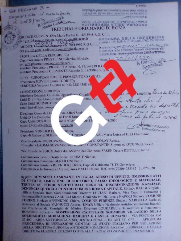 Il testo depositato presso il tribunale di Roma e la lettera inviata dall'associazione Nazione Rom alla Commissione Europea