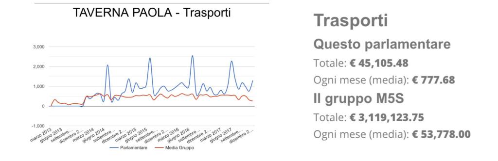 Se Paola Taverna è al primo posto per spese telefoniche e di trasporti, è solo al 68esimo su 123 per le spese totali. Il pentastellato che ha speso di più è Massimiliano Bernini, con un totale di 315,513.73 euro. Per fare un confronto, andiamo a vedere quanto spende Luigi Di Maio sempre di telefono: 4,423.70 euro,e di trasporti 49,210.54 euro. Il fatto curioso è infatti che tra i piu spendaccioni non figurino i “Big” del movimento. Il primo nome più conosciuto che si incontra nel riepilogo totale è quello di Alfonso Bonafede, al 15esimo posto con un totale 239,003.73 euro. Al 27esimo Giulia Grillo (€ 210,880.57), al 39esimo Alessandro di Battista (€ 197,229.46), 47esimo per Laura Castelli (€ 189,063.32) , 66esimo per Roberto Fico (€ 174,205.82). Bisogna arrivare al 77esimo post per incontrare il nome di Luigi Di Maio, con un totale di 160,782.06 euro. Il più morigerato?Francesco Cariello, che raggiunge l’ultimo posto (o il primo, dipende come la si vede) con una spesa annua di soli 100,143.62 euro.