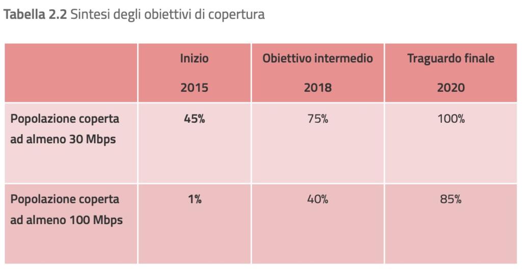 Il tutto è confermato all’interno di una tabella allegata al documenti di avvio del Piano BUL redatto dal governo italiano nel 2015.
