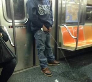 C’è una foto, che gira ormai da diversi anni, che raffigura un uomo mentre urina in una metropolitana.