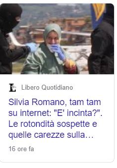 Tralasciando l’orrenda pagina degli insulti rivolti alla 24enne liberata, occorre concentrarsi su una serie di voci che sono iniziate a circolare sui social e che la stessa giovane ha già smentito nel suo interrogatorio a Roma con gli inquirenti. Silvia Romano incinta è una delle fake news più gettonate che circola sui social, coadiuvata da articoli di alcuni giornali (i soliti, senza stare qui a far nomi e cognomi) che poi, però, hanno magicamente cancellato l’articolo. Ma è rimasta traccia sui motori di ricerca.