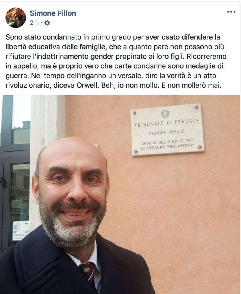 Simone Pillon commenta la condanna per diffamazione
