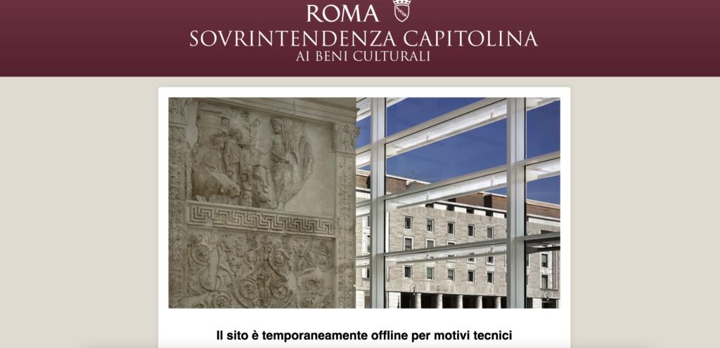 Alcuni di questi portali non sono attualmente raggiungibili. Altri, come quello della Sovrintendenza capitolina, rimandano. una landing page in cui si annuncia: «Il sito è temporaneamente offline per motivi tecnici. Ci scusiamo per il disagio».