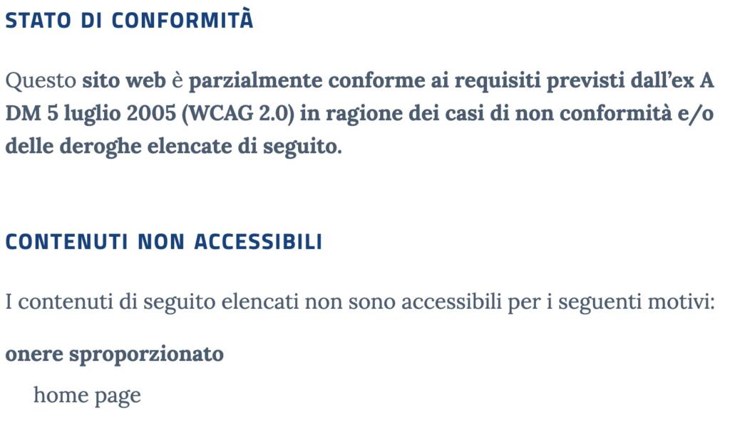Dunque, il sito Ministero del Turismo non risponde completamente ai criteri di accessibilità disposti per legge, soprattutto per quel che riguarda la homepage che risulta non essere accessibili per “onere sproporzionato”. Di cosa si tratta? La definizione arriva dalla stessa AGID: