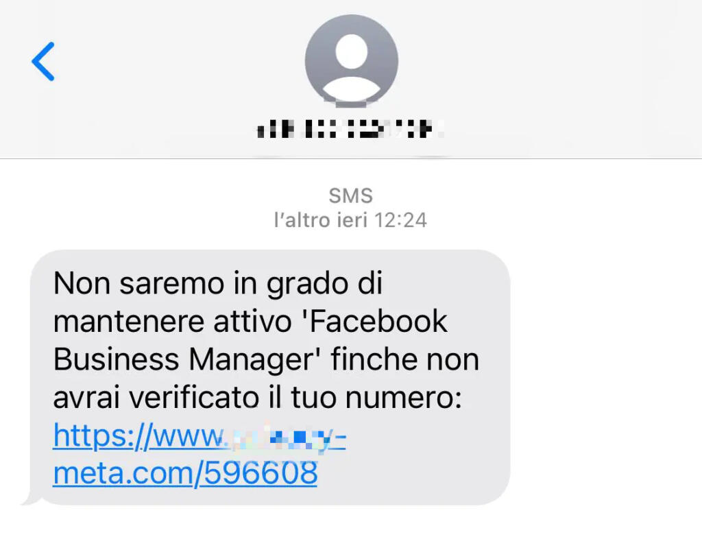 Sms disattivazione Facebook Business manager, è smishing