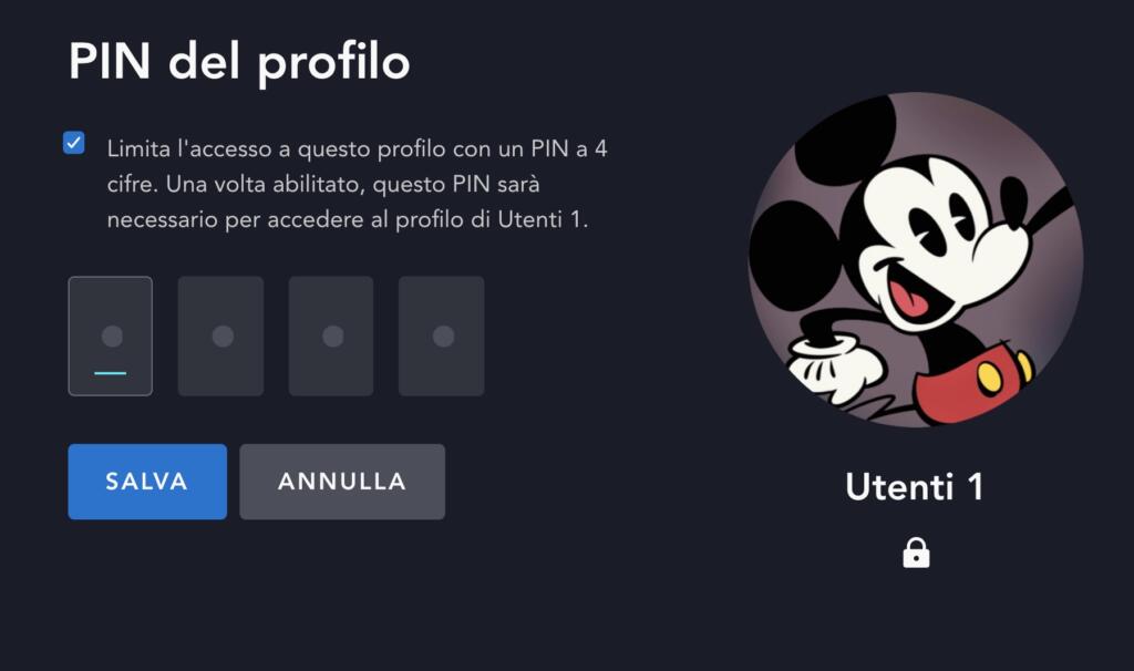 Entrando nella sezione ‘modifica profilo’, si può inserire un codice Pin di quattro cifre che limita l’accesso ai contenuti visti da quel profilo. In pratica, dunque, quel che guardi su Star Disney Plus non sarà visto dalle persone con cui si condivide l’abbonamento. Il tutto, inoltre, implementa il parental control che indicizza i titoli in base alla classificazione dei titoli.