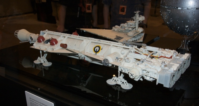 In realtà i primi bozzetti preliminari, ci mostrano un’astronave molto simile al Discovery di 2001: Odissea nello spazio. Lucas ovviamente chiede di modificarla. Molti disegni sono realizzati da un giovanissimo Joe Johnston ed il primo prototipo realizzato dal modellista Colin Cantwell, a cui poi si arriva alla versione definitiva di Stinson Lentz, che viene approvata da George Lucas.