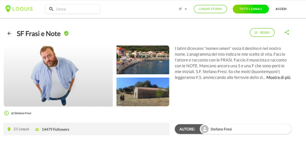 Da qui, l’importanza dell’aneddoto, del racconto personale, della chiacchierata. L’utente si trova a contatto con un accompagnatore d’eccezione, con cui – grazie a Loquis – condividerà un piccolo spaccato di vissuto. «Non è l’audioguida che ti spiega un posto – dice Stefano Fresi -, è Carlo Verdone che passeggia con te e che ti dice: “quando facevo il film Borotalco, è successa questa cosa”. L’aneddotica è una delle cose più affascinanti che esistano, significa legare un luogo a dei racconti fatte da persone appassionate che ti fanno venire voglia di approfondire. A me è capitato tante volte, con tanta gente che ho incontrato. I famosi Loquis “dal vivo”, irripetibili perché non registrati. Ecco, l’idea che di queste cose possa rimanere traccia è affascinante. È un’intimità che decidi di mettere in gioco nel momento in cui la racconti. Gli odori che sento quando attracco con la nave in Sardegna, che ho descritto in un mio Loquis, sono una parte di me che ho deciso di condividere con chi mi vuole bene, ma che smette di essere intima nel momento in cui diventa pubblica».