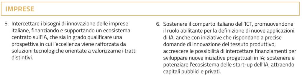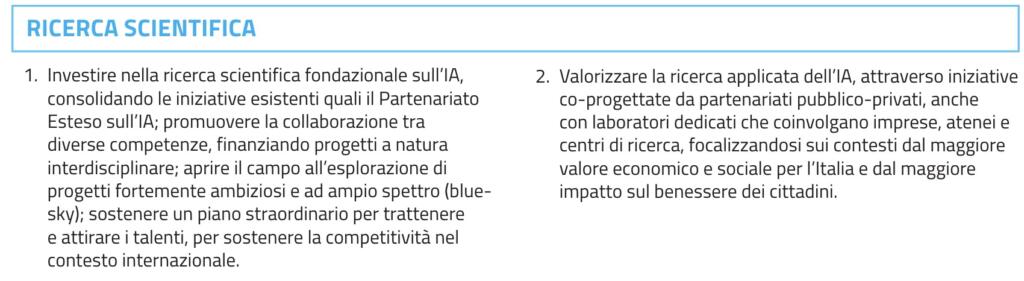 Gli elementi chiave di questa Strategia Nazionale sono stati sintetizzati in dieci punti, suddivisi per sei aree di interesse. Si parte da uno dei temi che sembra stia rallentando la discussione in Consiglio dei Ministri: la creazione di una Fondazione per la ricerca scientifica sull’AI. L’obiettivo primario è quello di aiutare le aziende italiane – soprattutto le startup – a ottenere finanziamenti per lo sviluppo di LLM “made in Italy”. Insomma, il classico tema della sovranità digitale spesso decantato dal governo.