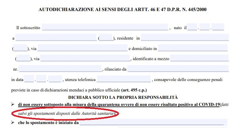 L’uomo ha detto di essere un medico e di attendere con trepidazione l’esito di questo ultimo test, il suo primo tampone in auto, per poter tornare a lavorare e dare una mano ai propri colleghi. In molti, però, si chiedono come sia possibile far lasciare la quarantena e far uscire di casa una persona che risulta essere contagiata. La risposta è nel modulo di autocertificazione.