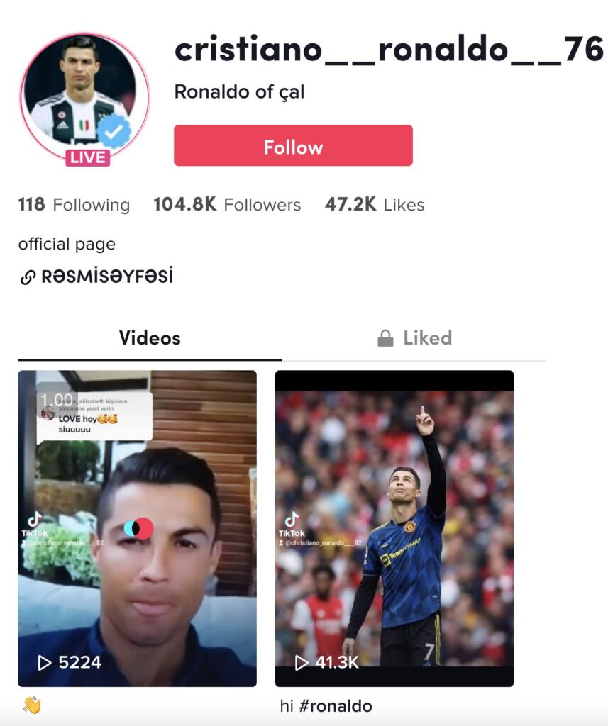 TikTok Cristiano Ronaldo, il finto profilo da 100mila follower