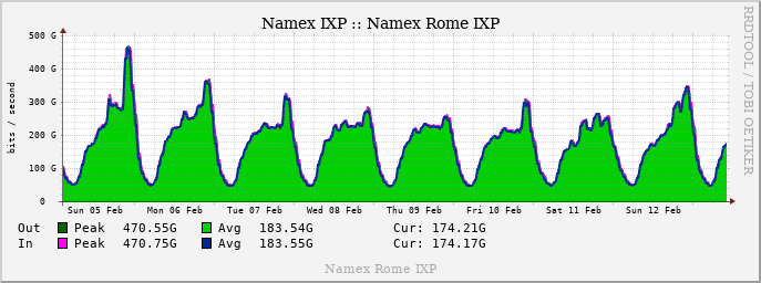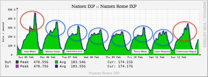 And again #football and again a #Internet traffic record. Tonight it is the turn of Inter – Milan for the Italian football major league. The highest #traffic peak ever here at #Namex (@namex_ixp), the Rome #IXP. Almost half a tera! 470Gbps of public #peering! pic.twitter.com/2WiVRet6fD