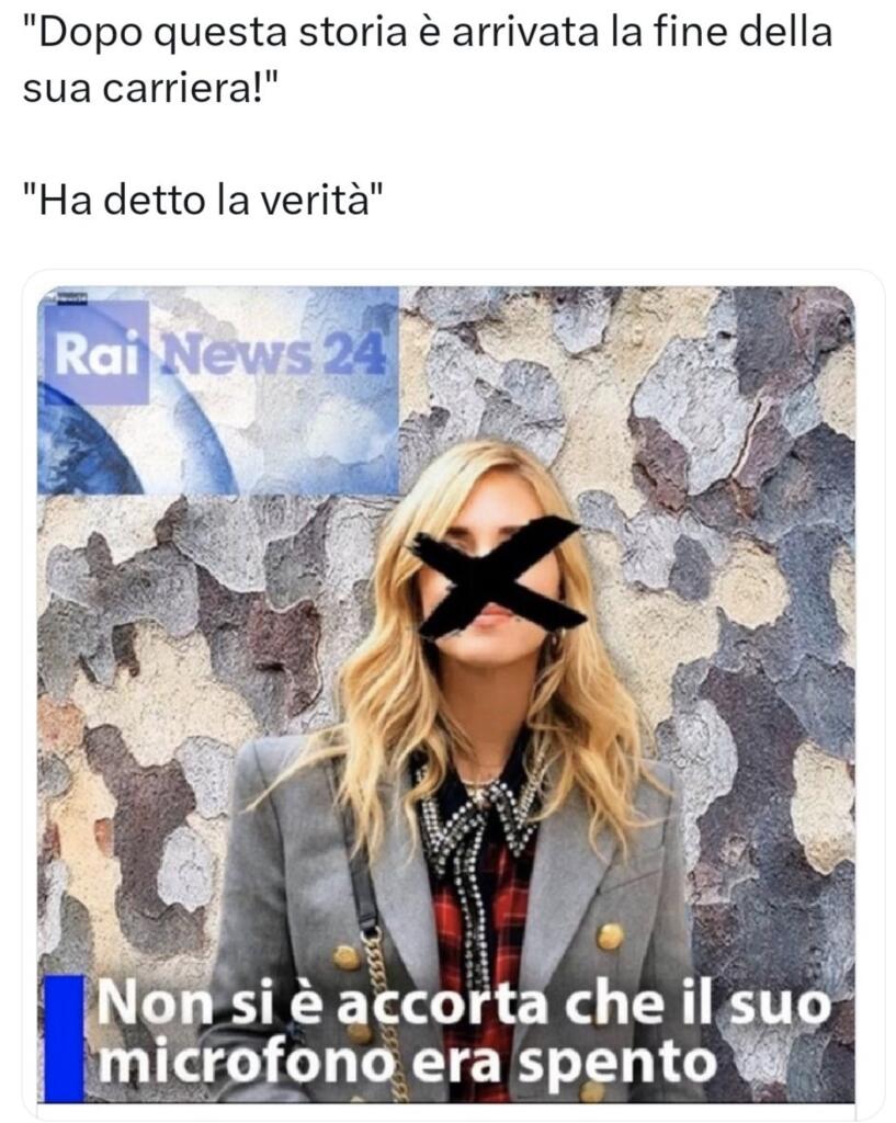 Nell’immagine, si vede il volto di Chiara Ferragni e quel titolo «Non si è accorta che il suo microfono era acceso», accompagnato dal testo di un post che mira ad attirare l’attenzione dell’utente. Come si può vedere, nell’immagine viene riportato il logo di RaiNews24.