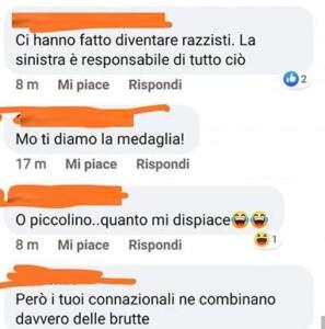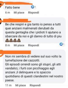 La vittima risiede in Italia da un anno e lavora presso una Onlus che si occupa di giovani disabili. Per ulteriori informazioni sull’episodio vi rimandiamo all’articolo di FanPage dal quale abbiamo raccolto dei commenti atroci, che vi andiamo a riportare: