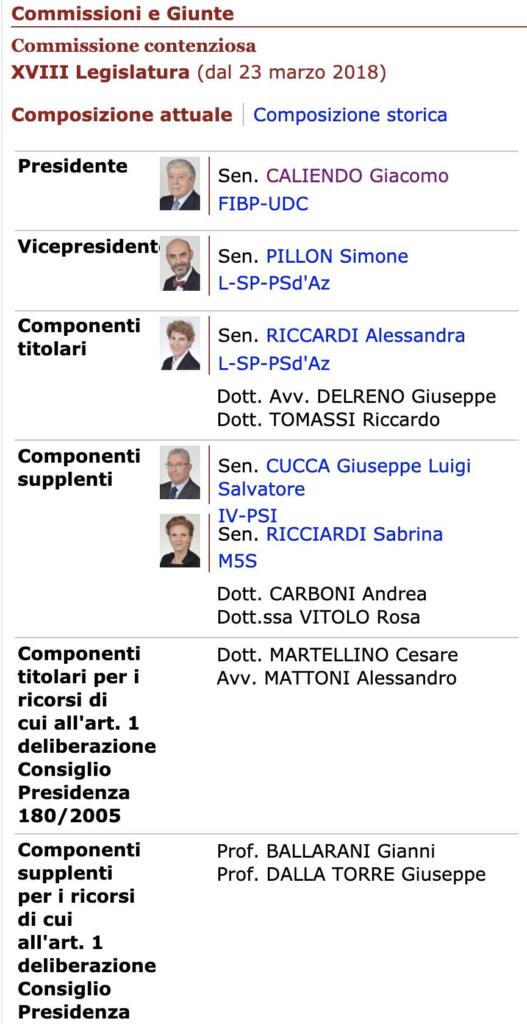 L’unico politico presente in Commissione Contenziosa al Senato a votare a favore del ripristino dei vitalizi a ex senatori è stato Giacomo Caliendo, senatore di Forza Italia e presidente della stessa Commissione. Gli altri due membri che hanno votato sì, infatti, sono stati il professore Gianni Ballarani e il professor Giuseppe Dalla Torre. Questi ultime due non fanno parte del parlamento italiano, ma sono due dei tecnici (in questo caso supplenti, vista l’assenza dei titolari Martellino e Mattoni).