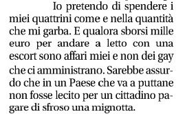 Feltri torna a parlare di governo «di gay» perché vuole esser libero di pagare una escort in contanti